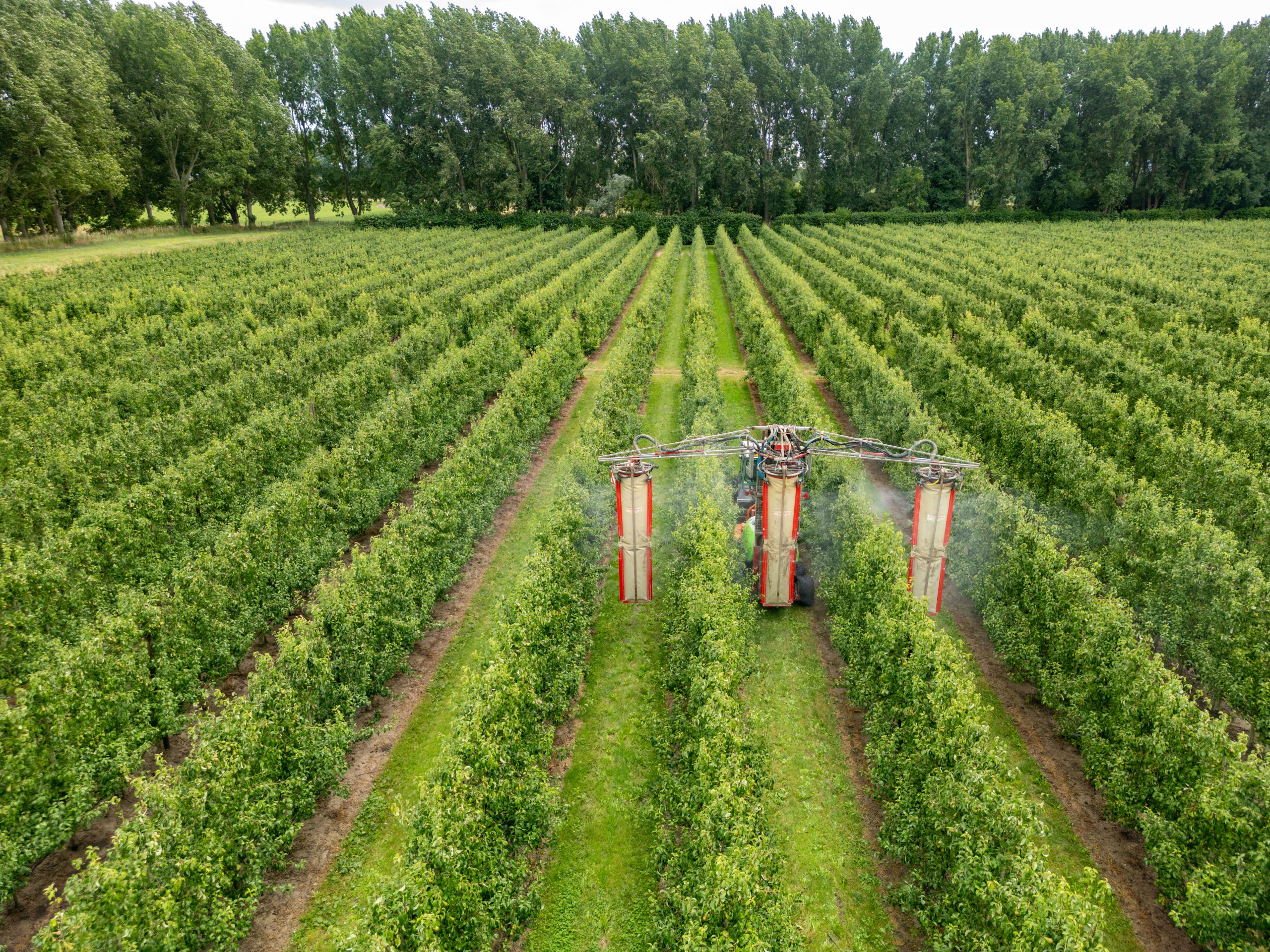 Op dit moment hebben we voor het afspuitschema nog voldoende sterke fungiciden beschikbaar. In de toekomst gaat dit veranderen. Op de proeftuin Randwijk en bij PC Fruit zijn ervaringen opgedaan met groene middelen in het afspuitschema. Concrete voorbeelden van groene middelen zijn Serenade, Blossom Protect, Vacciplant en Nexy (dompelbehandeling). De werking van deze middelen is vaak zwakker dan de bestaande fungiciden. Wel is het mogelijk deze middelen in te zetten als aanvulling op chemie, bijvoorbeeld kort voor de pluk als een extra toepassing. Deze groene middelen geven geen residu.