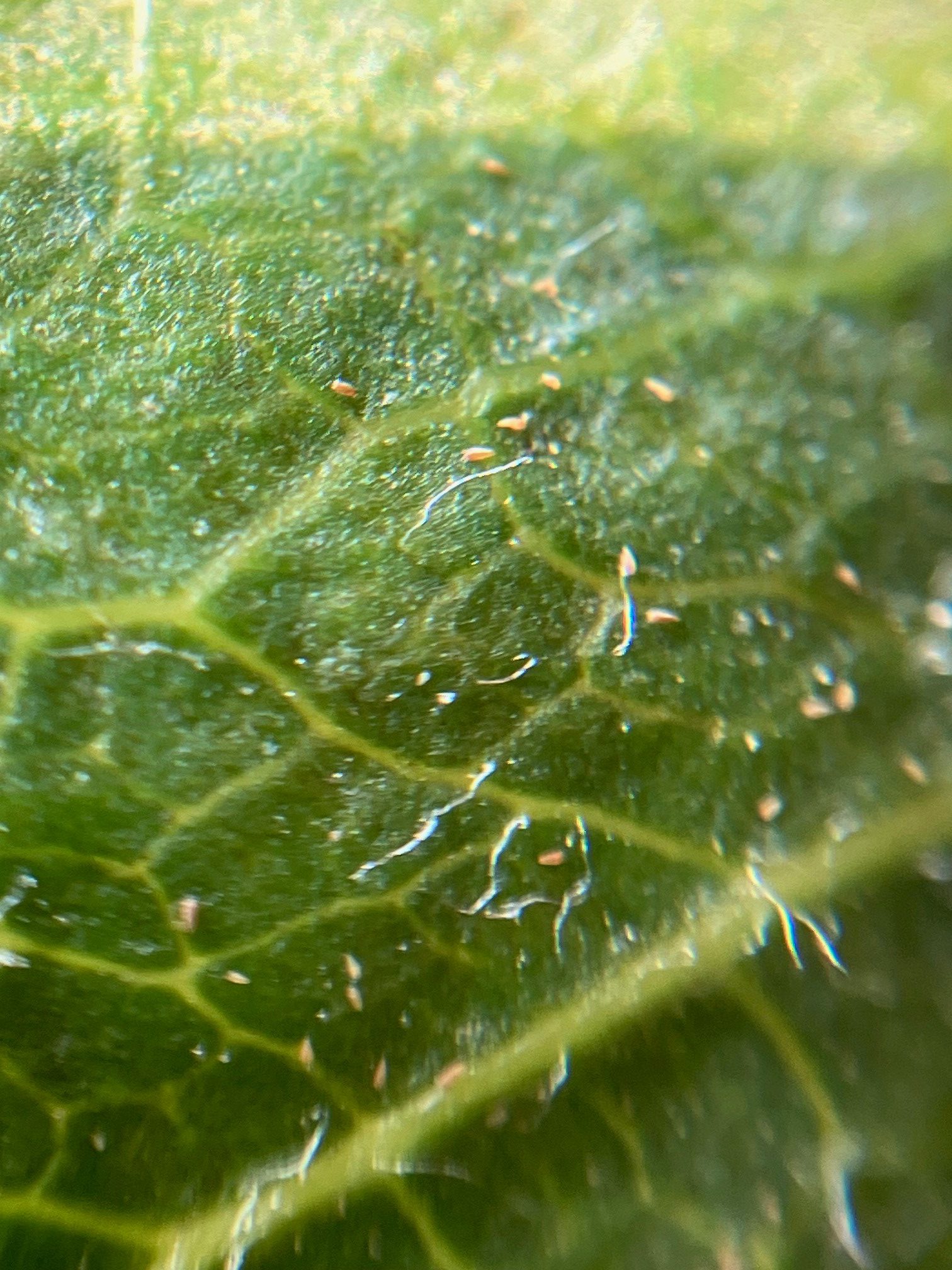 Dit jaar zien we ook waar Movento/Batavia is toegepast, aantasting van roestmijt. Opvallend is dat de  roestmijten ook aan de bovenkant van het blad te vinden zijn. Bij warm weer kan dit snel uitbreiden. Controleer daarom regelmatig. Belangrijk is ook te monitoren of roofmijten aanwezig zijn.