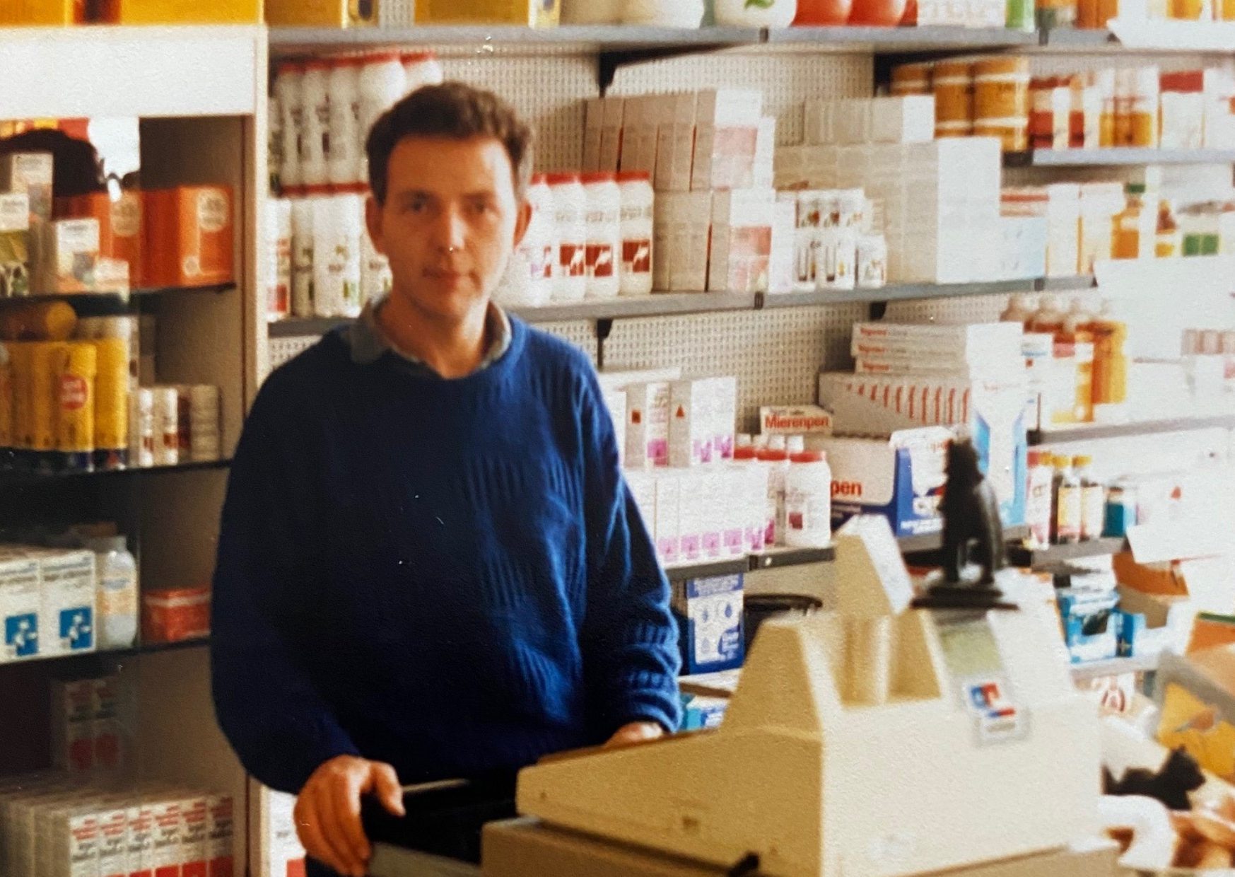 Foto: Jan in de dierenspeciaalzaak in 1985