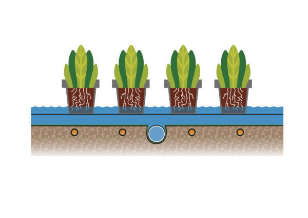 Er wordt – in het kader van geïntegreerde gewasbescherming – vooral op vergroening gefocust, maar in de systeemaanpak biedt ook het experimenteren met andere teeltmethoden een interessant perspectief. Maar het aantal experimenten is nog beperkt. Naast de teelt op water, is er één teler die uit de grond gaat telen en gebruik maakt van potten. ErfGoed uit Moerkapelle heeft nu iets nieuws neergezet: een laag teeltaarde van ongeveer 15 centimeter bovenop een eb- en vloedvloer. Daarmee komen ze dicht bij de traditionele teelt.” In gesprek met Cock van Bommel van ErfGoed, Sander Vermeer en Henk van Gurp van Van Iperen en René Corsten, senior adviseur chrysant bij onderzoeks- en adviesbureau Delphy. René: “Bijzonder aan deze teeltmethode is, dat je eigenlijk niet kunt spreken van een teeltlaag van 15 centimeter. Door de dynamiek tussen de teeltaarde en de eb- en vloedvloer onderin die laag, moet je de hoogte van de teeltvloer eigenlijk meerekenen. Dat vormt een eenheid. Zo treedt onderin de teeltlaag geen enkele vorm van verslemping op. De grond blijft vochtig, maar door de afwatering via de teeltvloer trekt lucht de grond in en komt er meer zuurstof bij de wortels. En dat zie je terug in de kwaliteit van het gewas.”