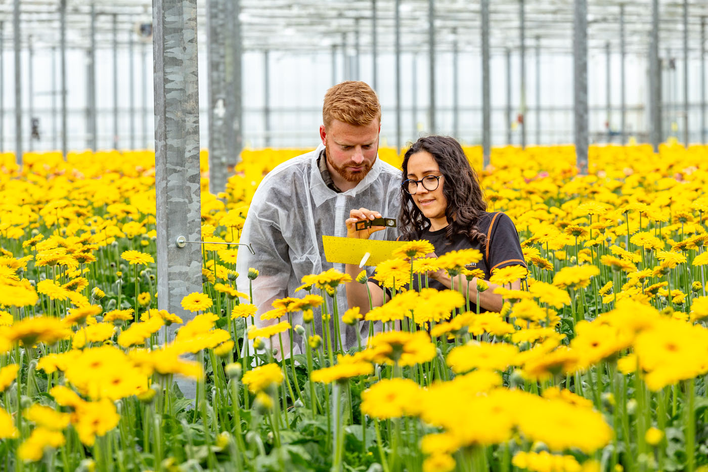 Elke veertien dagen komen twee adviseurs van Van Iperen langs en lopen ze mee tijdens het scouten. Hun aandacht gaat vooral uit naar de probleemgebieden. Daarna gaan ze in gesprek met de teeltmanager en de scout en bepalen ze de strategie voor de volgende twee weken. Rups en witte vlieg vormen op dit moment de grootste bedreiging. Peter Barendse en Hen Groenewegen van EveryD Flowers in gesprek met één van die adviseurs, Martijn Braber van Van Iperen, over de uitdagingen in de gerberateelt en de oplossingen die er zijn.