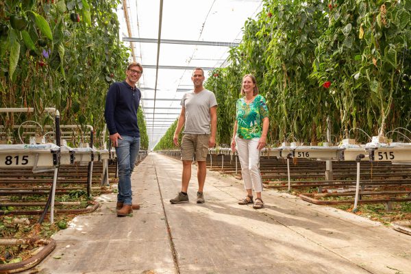 Voor Jeannette Vriend van Glastuinbouw Nederland en Guido Halbersma, technisch adviseur bij Van Iperen, is deze plek geen onbekend terrein. Wouter Overgaag, medeeigenaar van deze kwekerij, is actief in landelijke netwerken, zoals de landelijke commissie Paprika. De drie werken geregeld samen om knelpunten in de teelt te bespreken en zich in te zetten voor oplossingen. Eerder dit teeltseizoen kreeg de paprikasector, mede dankzij hun inzet, een vrijstelling om het middel Verimark tijdelijk in te zetten tegen Californische trips.